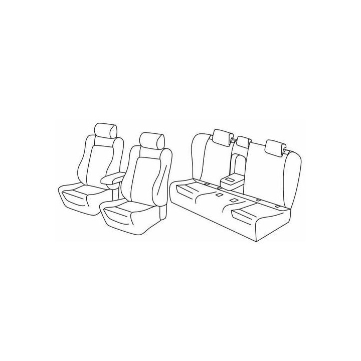 set of custom-made fabric covers for the front (2 front seats + armrest + 2 headrests) + (rear bench: seat + backrest + headrests)