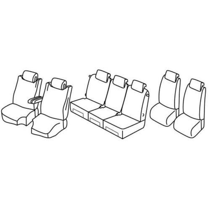 custom-made fabric cover set for front (2 front seats + armrest + 2 headrests) + 1st row 3 seats (rear bench: seat + backrest + headrests) + 2nd row 2 seats (rear bench: seat + backrest + headrests)