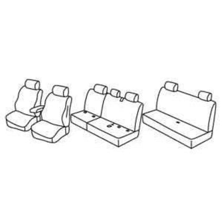 set of custom fabric covers front (2 front seats + armrest + 2 headrests) +2X (rear bench: seat + backrest)