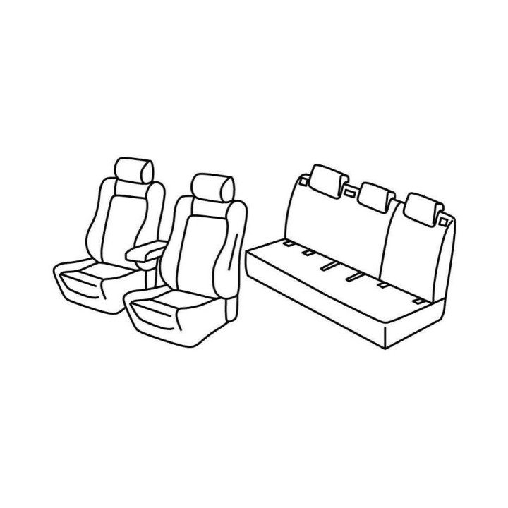 set of custom fabric covers for front (2 front seats + armrest + 2 headrests) + (rear bench: seat + backrest + headrests)