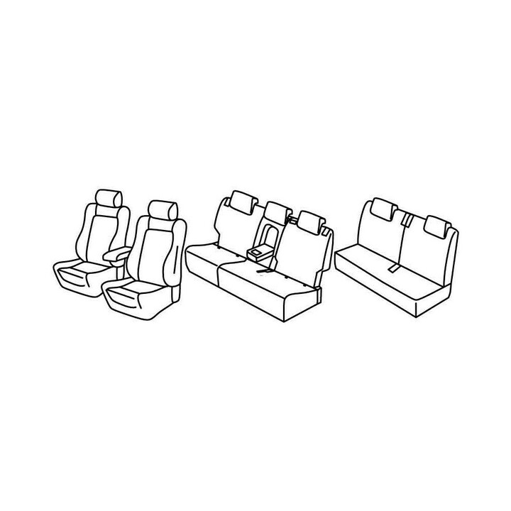 set of custom fabric covers front (2 front seats + armrest + 2 headrests) + 1ST ROW (rear bench: seat + backrest + headrests) + 2ND ROW (rear bench: seat + backrest + headrests)