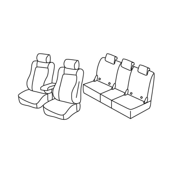 set of custom fabric front covers (2 front seats + armrest + 2 headrests) + (rear bench: seat + backrest + headrests)
