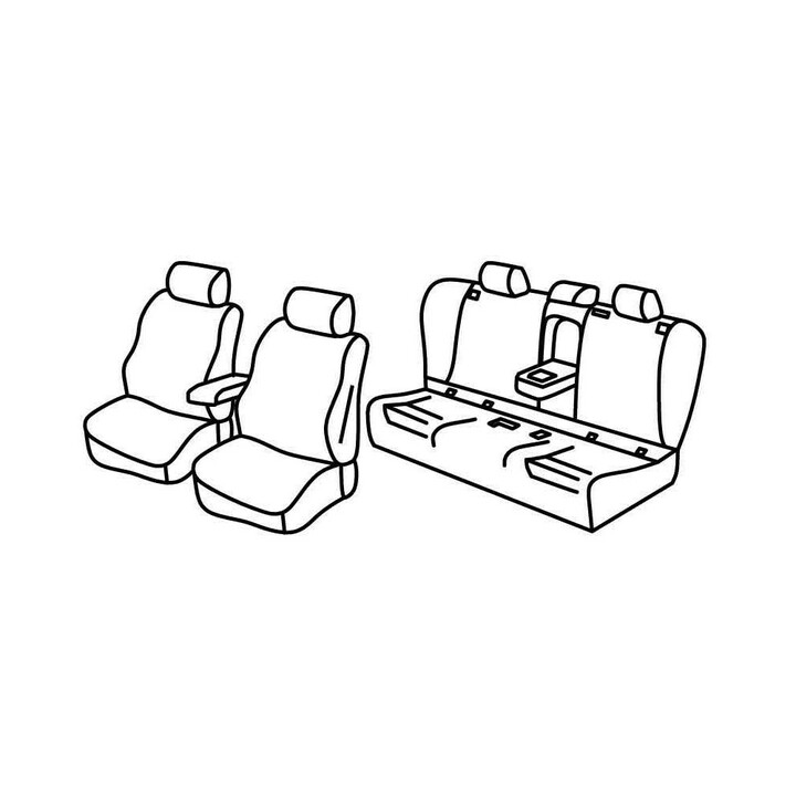 set of custom-made fabric covers front (2 front seats + armrest + 2 headrests) + (rear bench: seat + backrest):