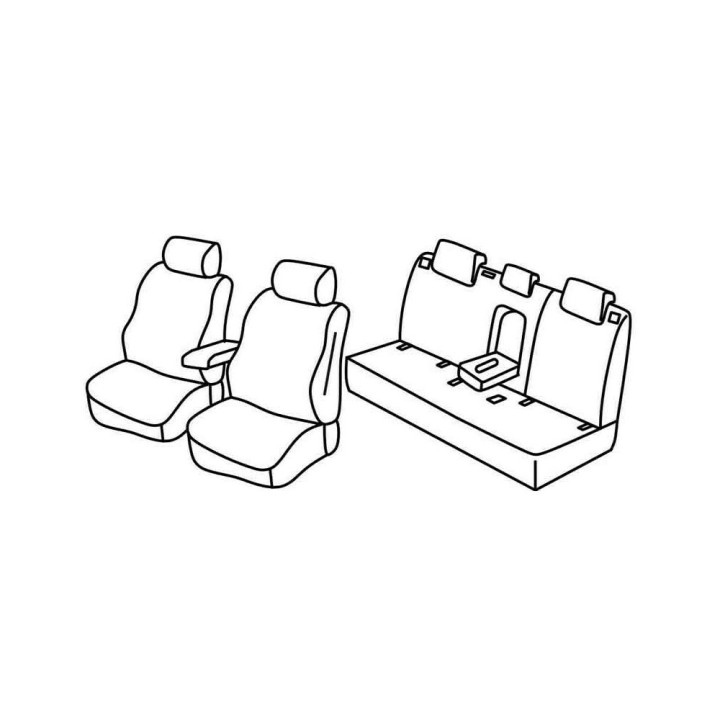 set of custom-made fabric covers front (2 front seats + armrest + 2 headrests) + (rear bench: seat + backrest + headrests)
