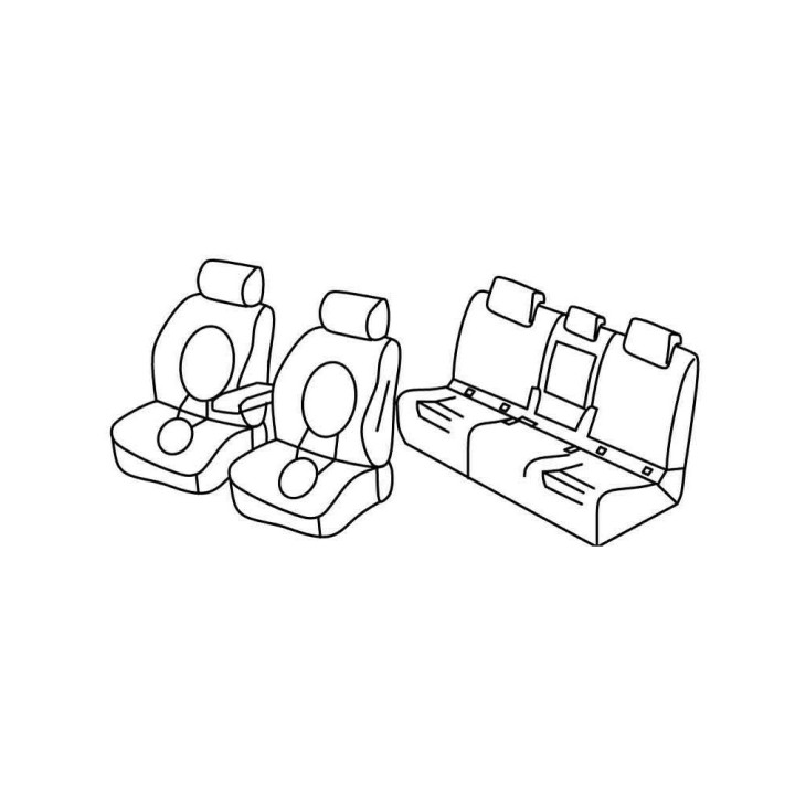 set of custom fabric covers for front (2 front seats + armrest + 2 headrests) + (rear bench: seat + backrest + headrests):