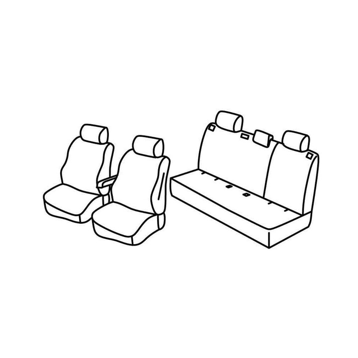 set of custom fabric covers for front (2 front seats + armrest + 2 headrests) + (rear bench: seat + backrest + headrests)