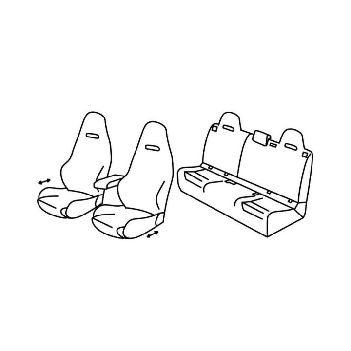 set of custom-made fabric covers front (2 front seats + armrest + 2 headrests) + (rear bench: seat + backrest + headrests)