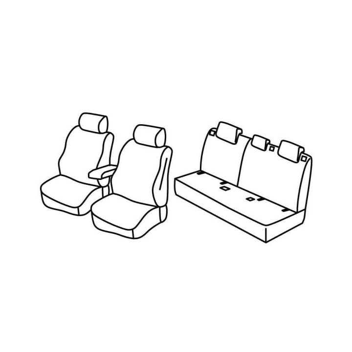 set of custom-made fabric covers for the front (2 front seats + armrest + 2 headrests) + (rear bench: seat + backrest)