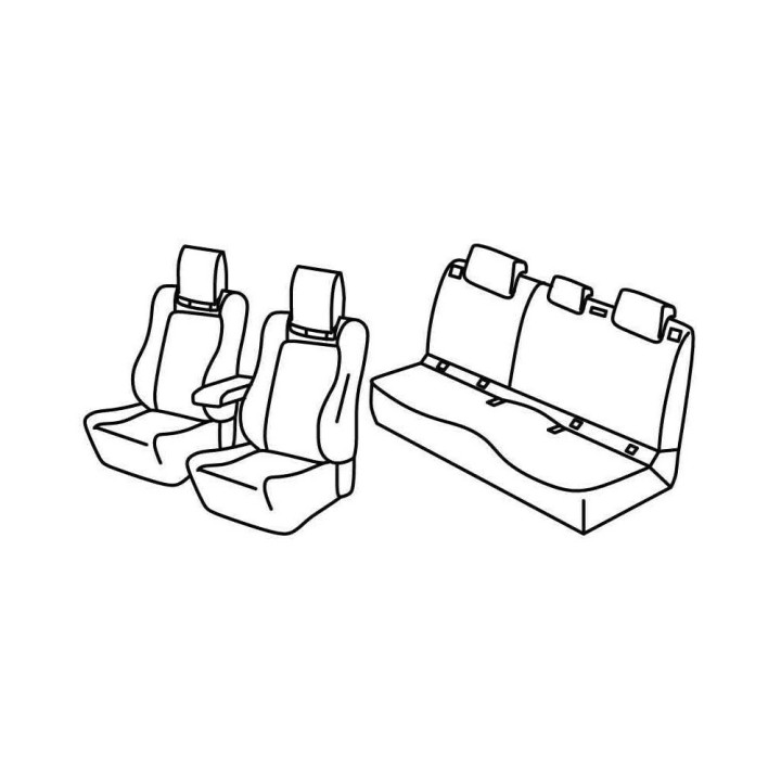 set of custom-made fabric covers for the front (2 front seats + armrest + 2 headrests) + (rear bench: seat + backrest)