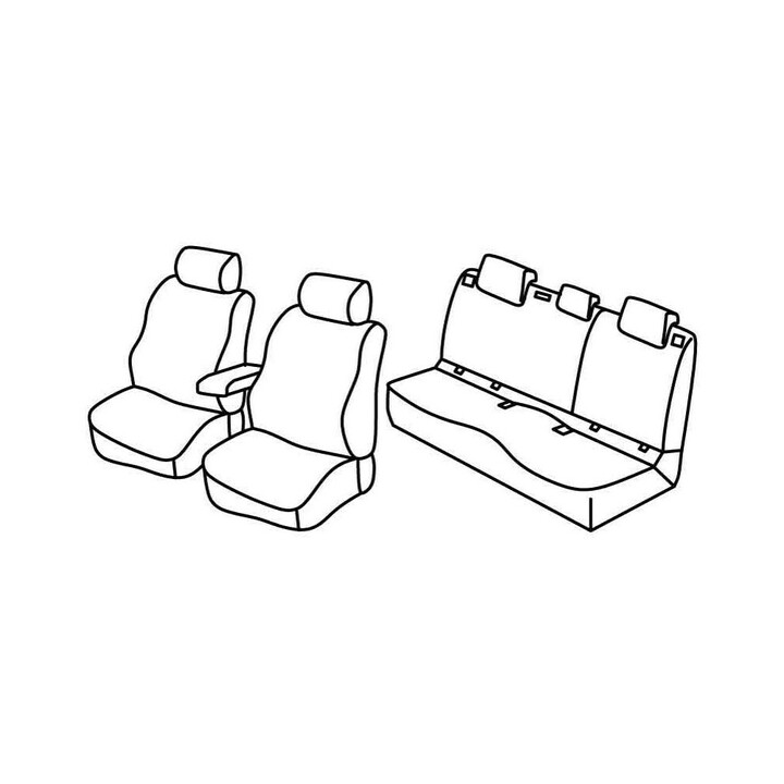 set of custom-made fabric covers for front (2 front seats + armrest + 2 headrests) + (rear bench: seat + backrest + headrests)