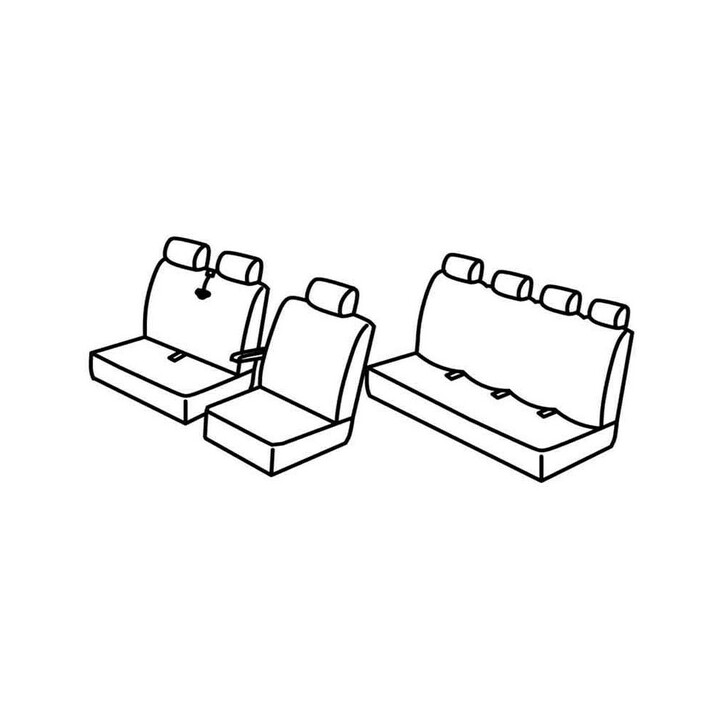 custom-made fabric cover set for front (1 front seat + armrest + headrests) + (Front bench: Seat + Backrest + Headrests (2 places)) + 4-seater rear bench