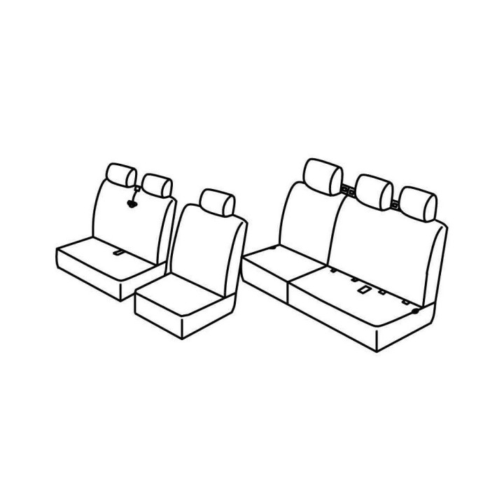 set of custom-made fabric covers for front ((2+1) 2 front seats + armrest + headrests) + (rear PASSENGER bench: seat + backrest + Headrests (3 places)):