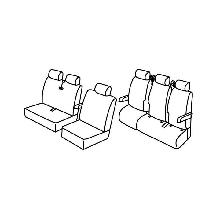 set of custom-made fabric covers for front ((2+1) 2 front seats + armrest + headrests) + (rear PASSENGER bench: seat + backrest + Headrests (3 places)):
