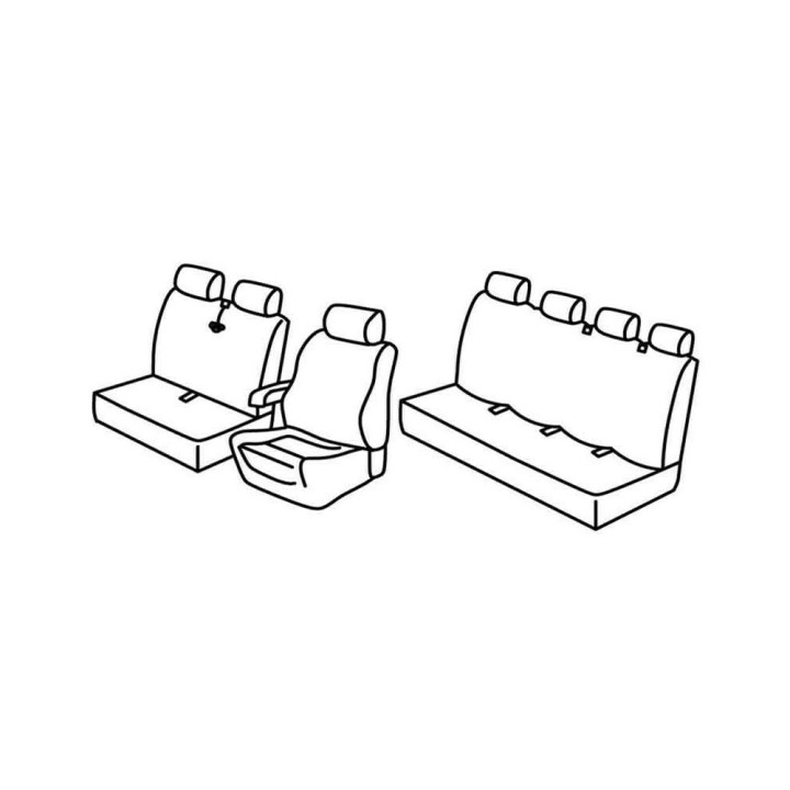set of custom-made fabric covers for the front ((2+1) 1 separate seat + 2-seater bench + armrests + headrests) + (rear PASSENGER bench: seat + backrest + Headrests (4 seats)):