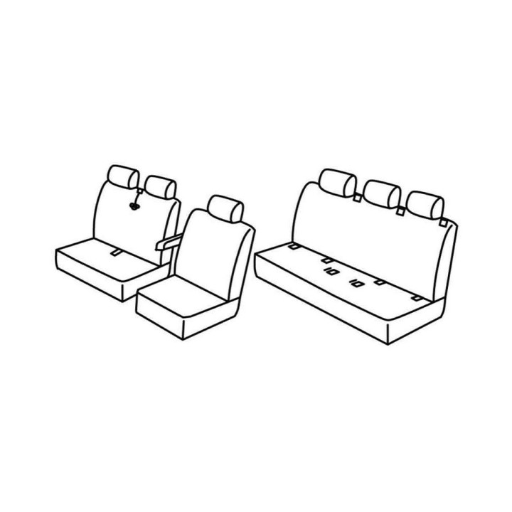 set of custom-made fabric front covers ((2+1) 2 front seats + armrest + headrests) + (rear PASSENGER bench: seat + backrest + Headrests (3 seats)):