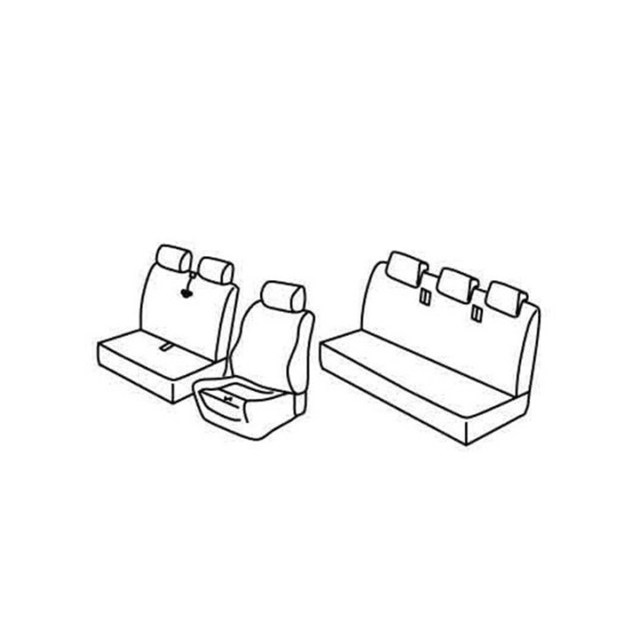 set of custom-made fabric front covers ((2+1) 2 front seats + armrest + headrests) + (rear PASSENGER bench: seat + backrest + Headrests (3 seats)):