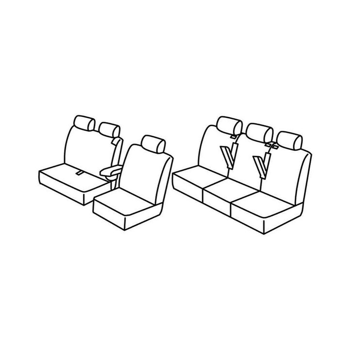 custom-made fabric cover set for front (1 front seat + armrest + headrests) + (Front bench: Seat + Backrest + Headrests (2 places)) + 3-seater rear bench