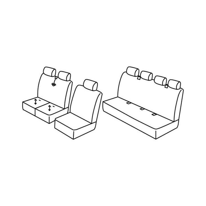 custom-made fabric seat cover set for front (1 front seat + armrest + headrests) + (Front bench: Seat + Backrest + Headrests (2 seats)) + 4-seater rear bench