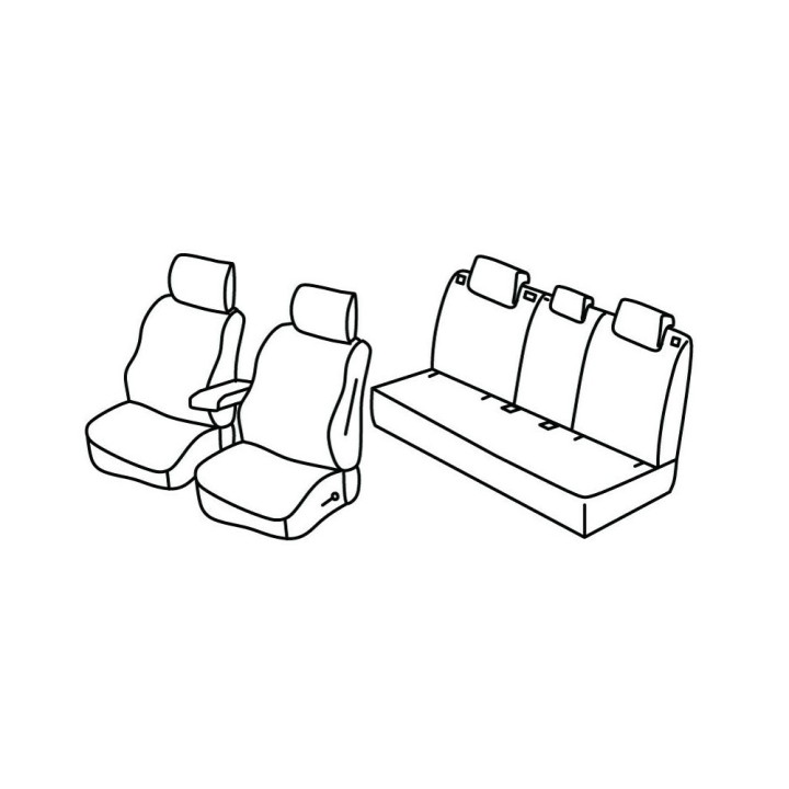 set of custom-made fabric covers for front (2 front seats + armrest + 2 headrests) + (rear bench: seat + backrest + headrests) + (rear bench: seat + backrest + headrests) :