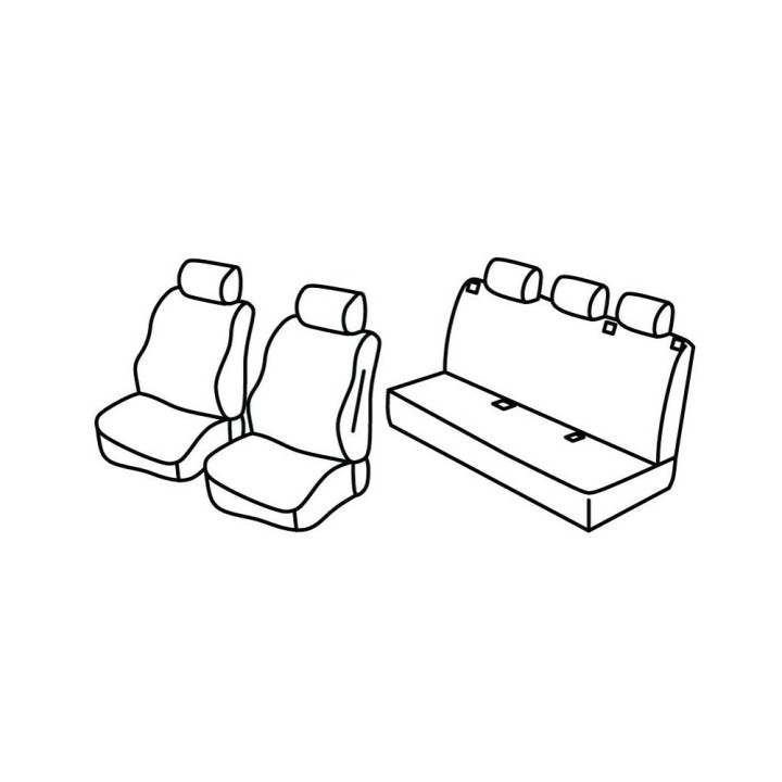 custom-fit fabric cover set for front (2 front seats + armrest + 2 headrests) + (rear bench: seat + backrest)