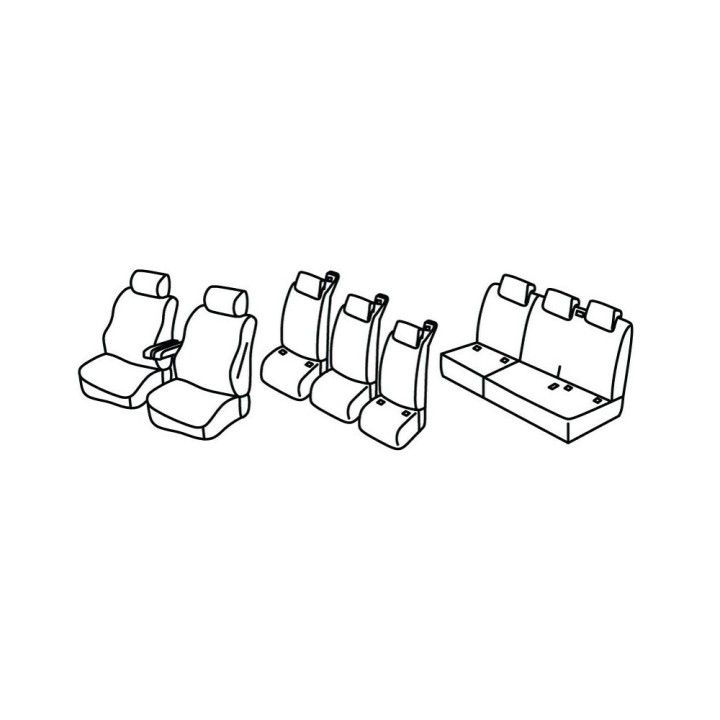 custom-fit fabric cover set for front (2 front seats + armrest + 2 headrests) + (rear bench: seat + backrest)