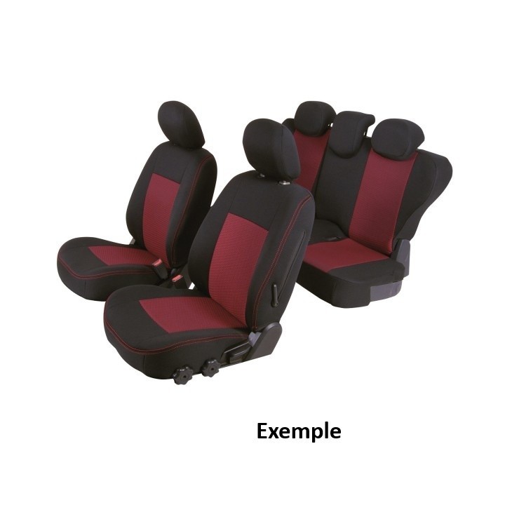 set of custom-made fabric covers for the front (2 front seats + armrest + 2 headrests) + (rear bench: seat + backrest)