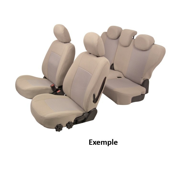 set of custom-made fabric covers for front (2 front seats + armrest + 2 headrests) + (rear bench: seat + backrest + headrests)