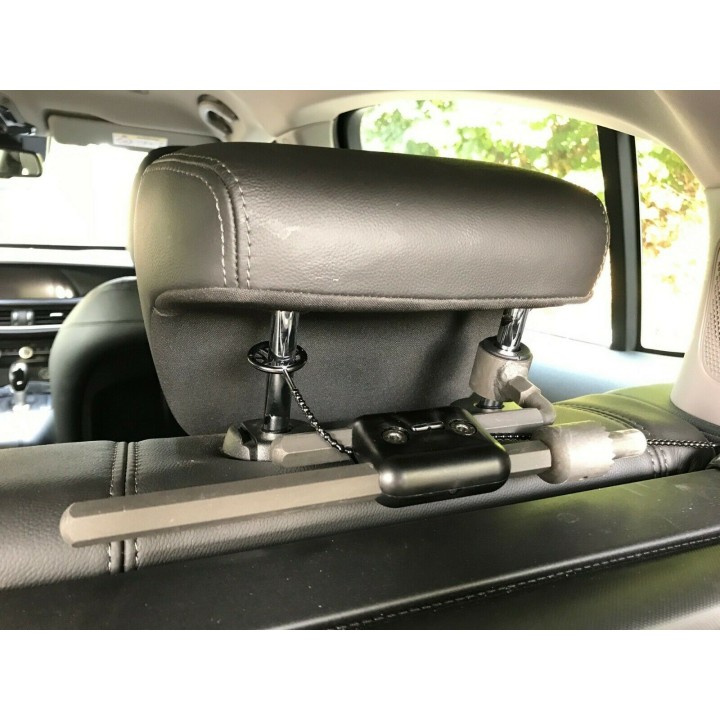 Secure attachment to the headrests of the rear seats using forged supports: