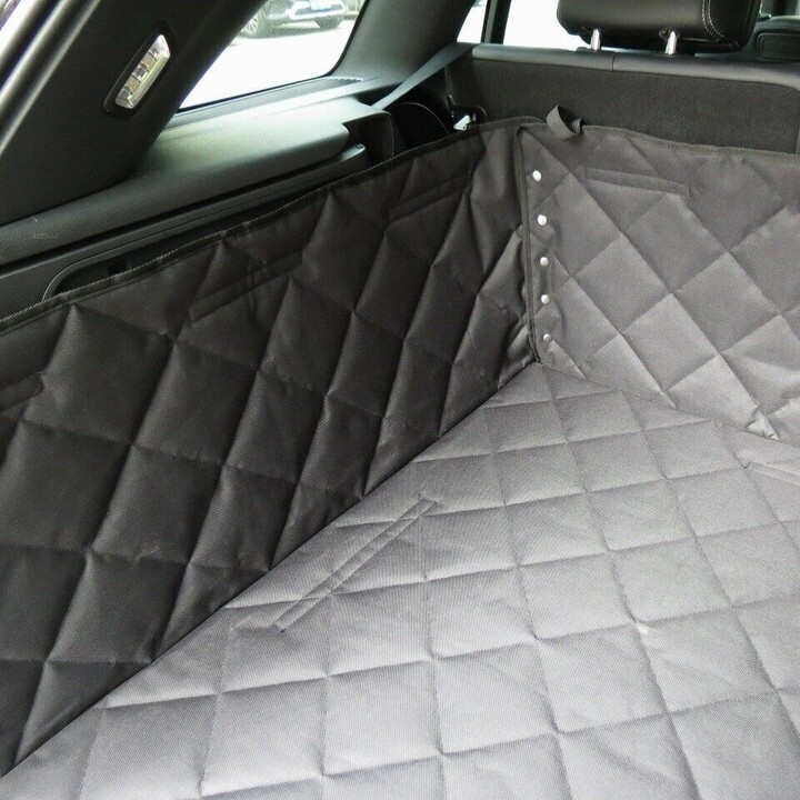 The liner covers the floor, side walls, back of the rear seats, and the boot lip. It is easily adjusted and secured using hook-and-loop fasteners and elastic straps.