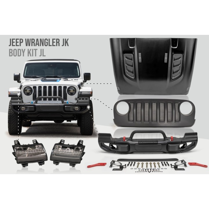 The complete conversion pack allows you to transform your JEEP WRANGLER JK into a JL.