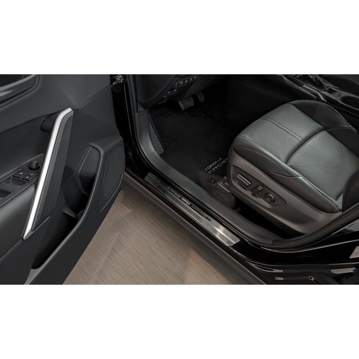 The STAINLESS STEEL door sills effectively protect the edges of your TOYOTA COROLLA CROSS against dents and scratches that may occur during entry and exit. In addition, they give your TOYOTA COROLLA CROSS a high-end appearance. This high-quality accessory is made in Europe.