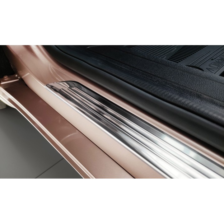 The STAINLESS STEEL door sills effectively protect the edges of your FIAT 500 against dents and scratches that may occur during entry and exit. In addition, they give your FIAT 500 a high-end appearance. This high-quality accessory is made in Europe.