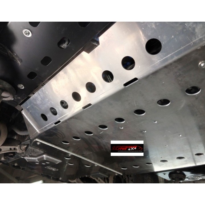 The sump guards are designed to protect the engine, gearbox, and transfer case against mechanical damage. Covers made of 6 mm thick aluminum alloy, laser-cut and shaped on digital presses.