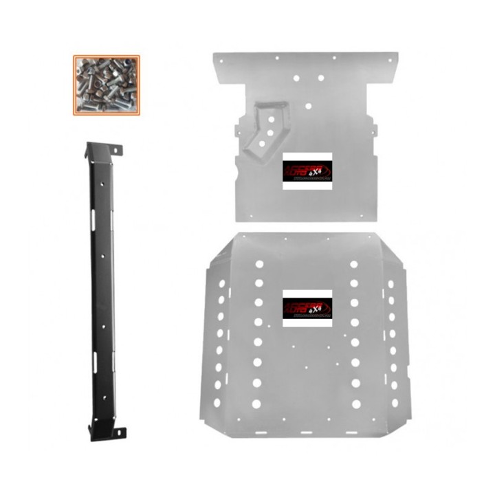 The skid plates are designed to protect the engine, gearbox, and transfer case from mechanical damage. Covers made of 6 mm thick aluminum alloy, laser-cut and shaped on digital presses.