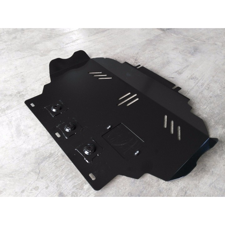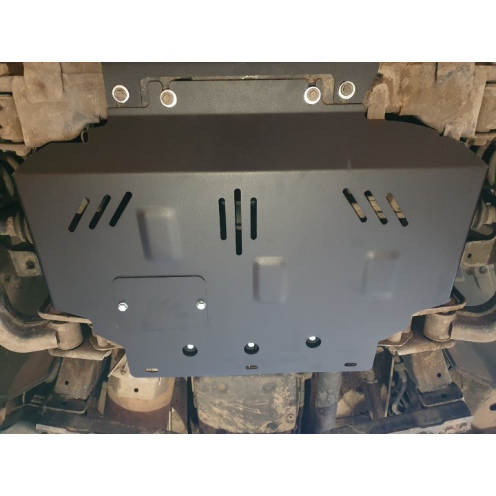 This protective plate is made of quality 3 mm thick steel and is fixed to the original holes of the vehicle. The service openings in the protective plate allow vehicle maintenance without disassembly.