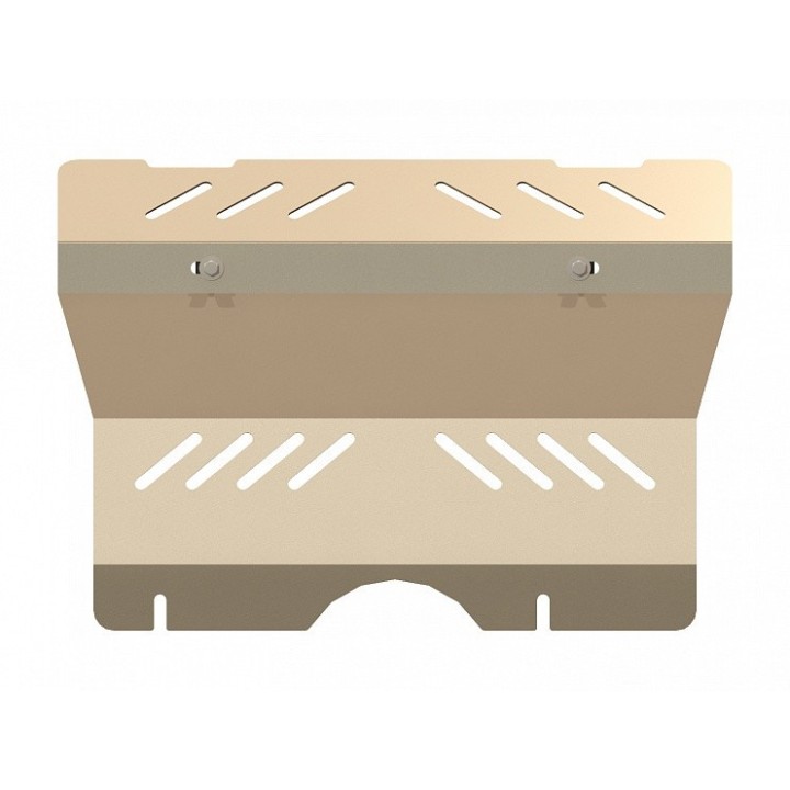 This protective plate is made of quality 5 mm thick aluminum and is fixed to the original holes of the vehicle. Service openings in the protective plate allow vehicle maintenance without disassembly.