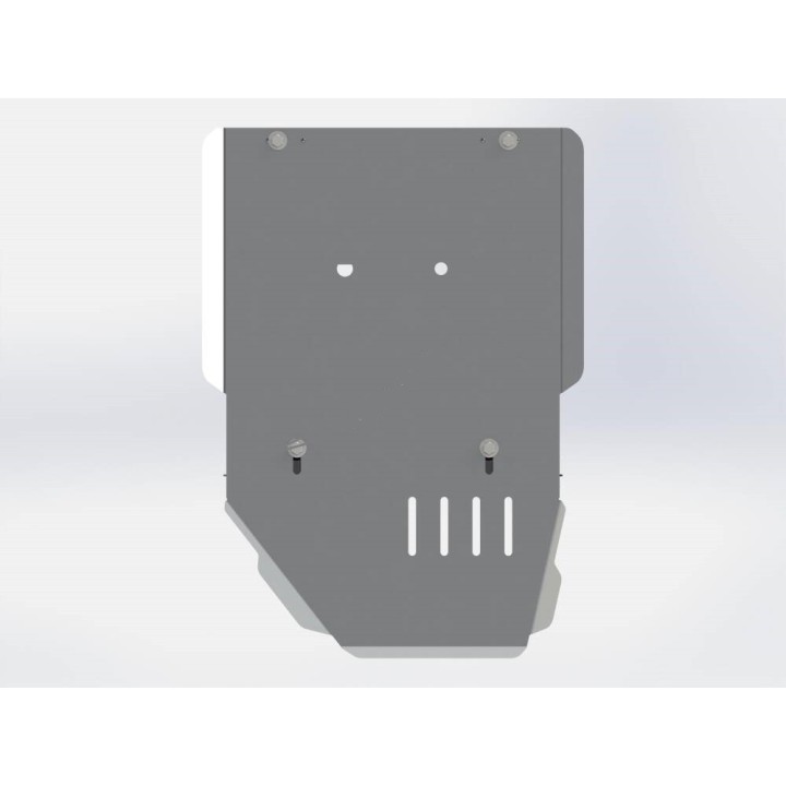This protective plate is made of quality 5 mm thick aluminum and is fixed to the original holes of the vehicle. Service openings in the protective plate allow vehicle maintenance without disassembly.
