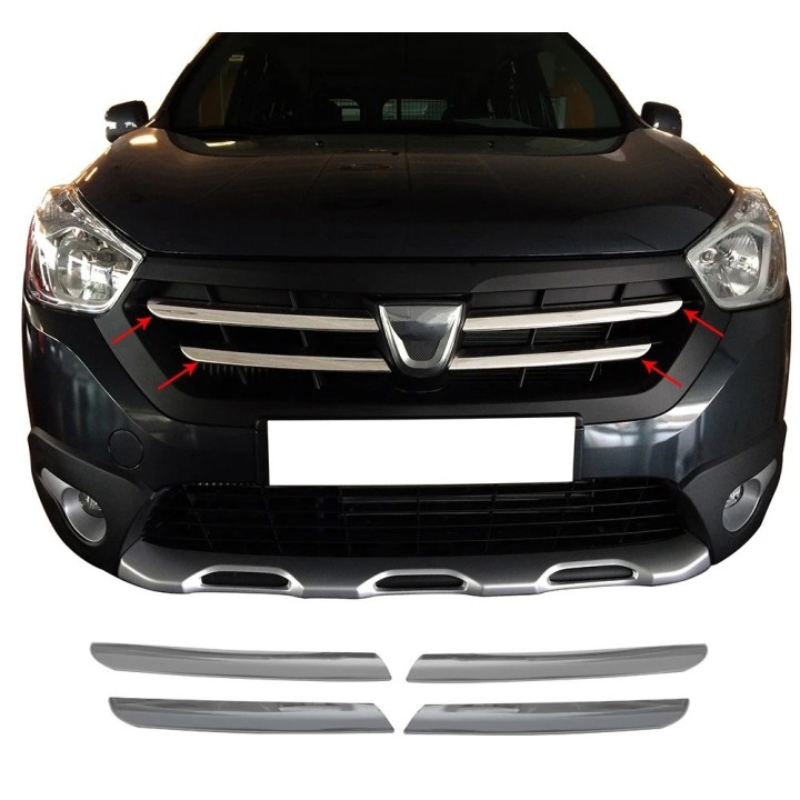 Radiator Grille Element DACIA LODGY STEPWAY 2012 2022 STAINLESS STEEL CHROME 4 PIECES