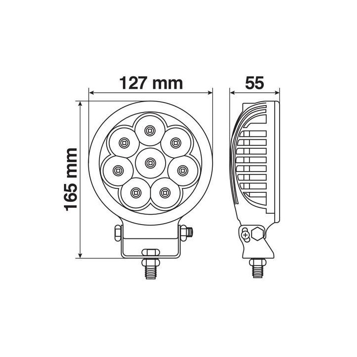 Aluminum housing. IP 67 waterproof. Adjustable steel bracket with fixing screws.