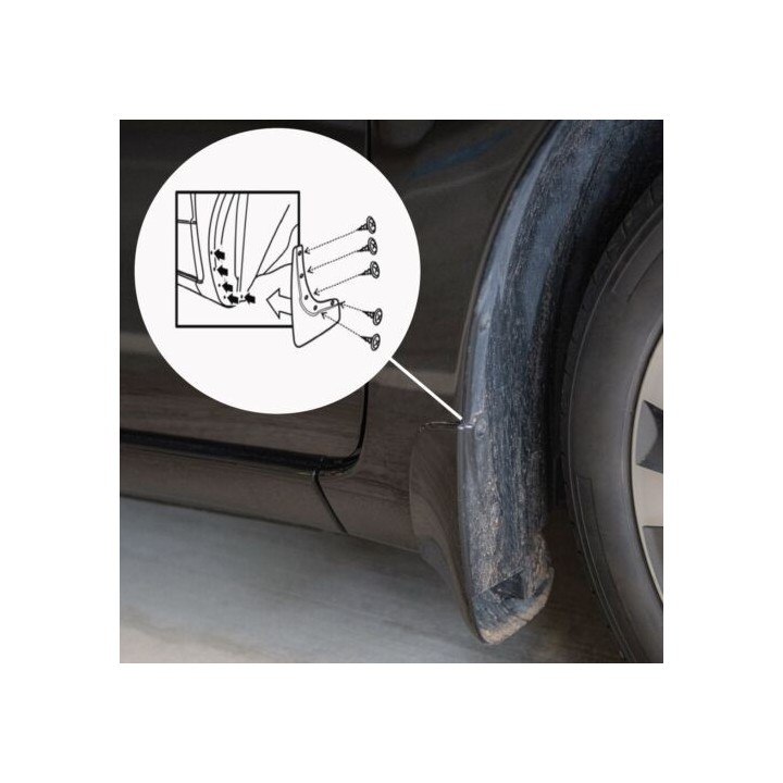 These specific mud flaps are designed to blend perfectly with the car's exterior line. They effectively protect the sides of the car againststone splashes from under the wheels and reduce the amount of water sprayed on cars driving behind. They are made of high-quality plastic, ensuringadequate flexibility, durability, and aesthetic appearance of the product for a long period of use.