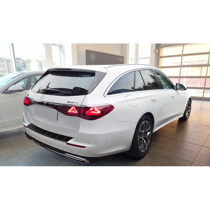 This boot sill protection with edges effectively protects against dents and scratches during loading and unloading. Thanks to its shape, like the ribbed pattern on top, it is designed to perfectly match the design of the MERCEDES E-CLASS. And if you ever want to replace the protector after intensive use, that's also possible. It will be much cheaper than repainting your bumper.