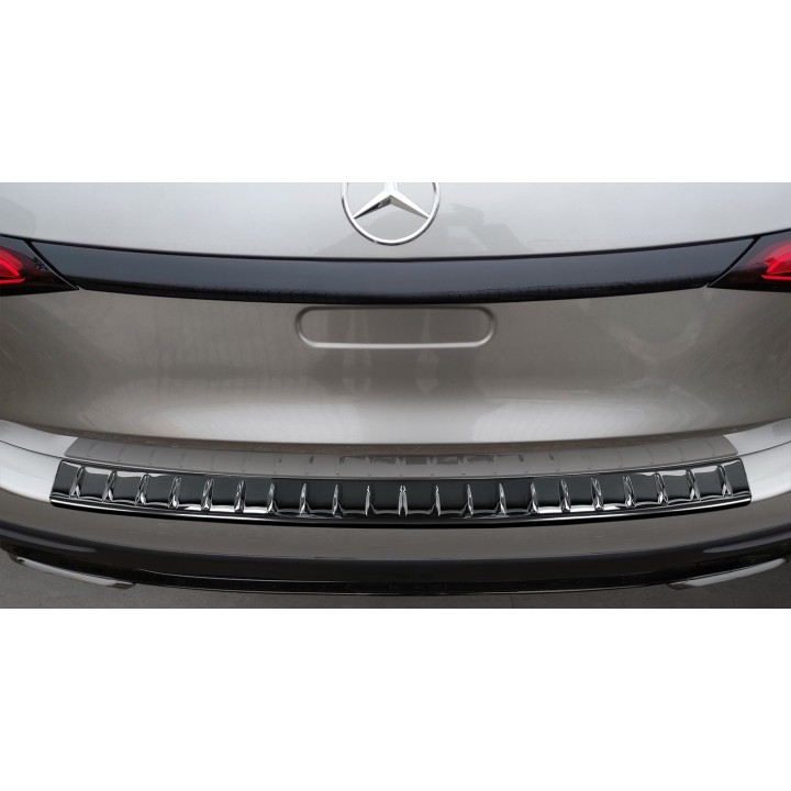 This boot sill protection with edges effectively protects against dents and scratches during loading and unloading. Thanks to its shape, like the ribbed pattern on top, it is designed to perfectly match the MERCEDES GLC's design. And if you ever want to replace the protector after intensive use, that's also possible. It will be much cheaper than repainting your bumper.