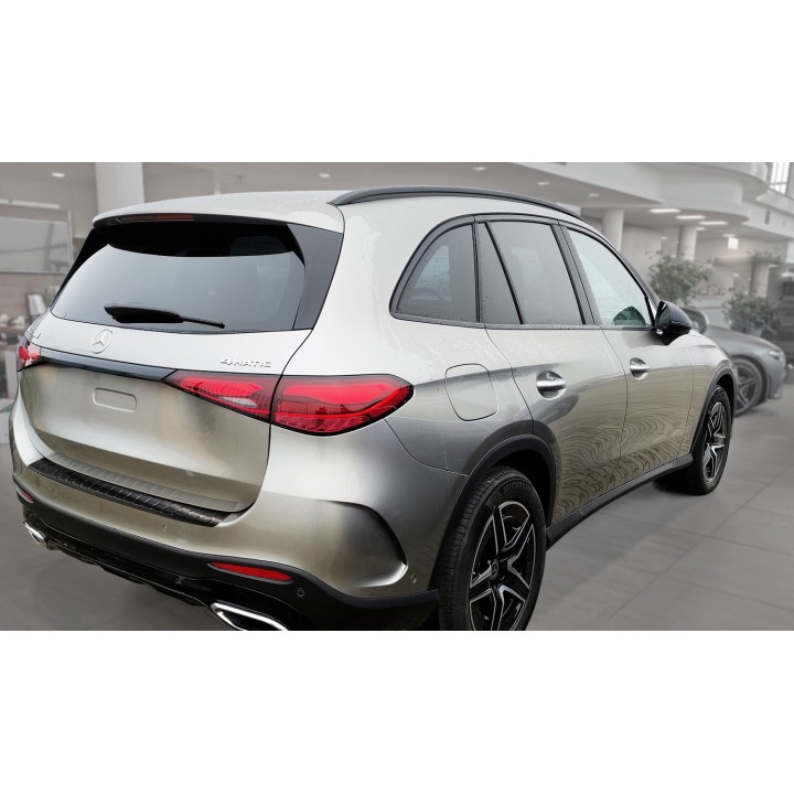 This boot sill protection with edges effectively protects against dents and scratches during loading and unloading. Thanks to its shape, like the ribbed pattern on top, it is designed to perfectly match the MERCEDES GLC's design. And if you ever want to replace the protector after intensive use, that's also possible. It will be much cheaper than repainting your bumper.