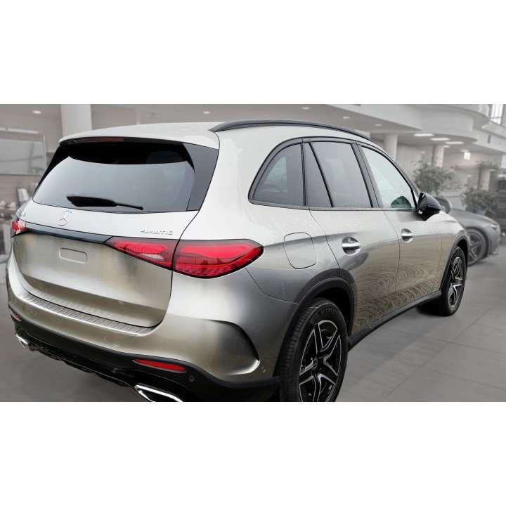 This boot sill protection with edges effectively protects against dents and scratches during loading and unloading. Thanks to its shape, like the ribbed pattern on top, it is designed to perfectly match the MERCEDES GLC's design. And if you ever want to replace the protector after intensive use, that's also possible. It will be much cheaper than repainting your bumper.