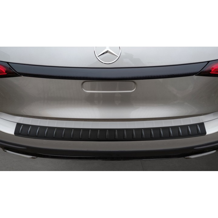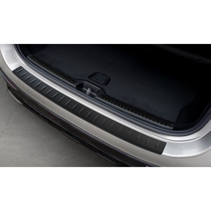 This trunk sill protection with a rim effectively protects against dents and scratches during loading and unloading. Thanks to its shape, like the ribbed pattern on top, it is made to perfectly fit the design of the MERCEDES GLC. And if you ever want to replace the protector after intensive use, that's also possible. It will be much cheaper than repainting your bumper.