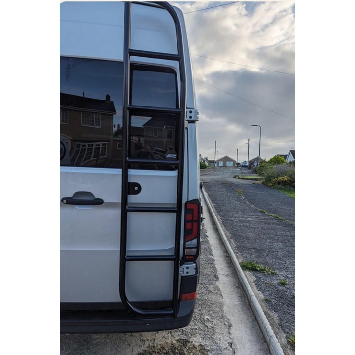 Our rear door ladders bolt onto the rear door through the van's hinge fixings with an additional bolt