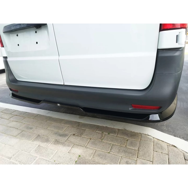 REAR SPLITTER for MERCEDES VITO W447: made of high-quality ABS plastic material using the latest thermoforming machine technology with easy and excellent assembly. The ABS plastic material we use for manufacturing products is available in glossy black with an anti-scratch surface and UV protection. The product also features a protective film that suggests peeling it off before installation.