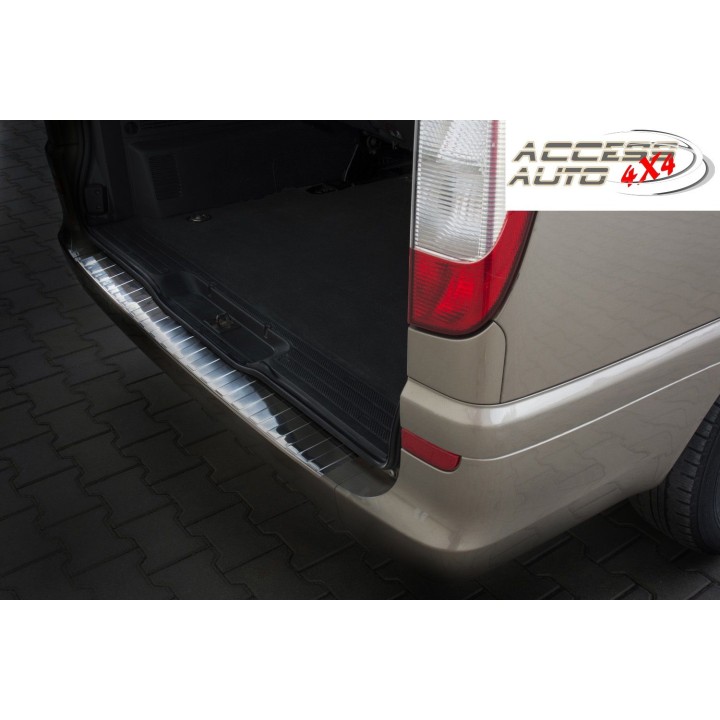 This boot sill protection with edges effectively protects against dents and scratches during loading and unloading. Thanks to its shape, like the ribbed pattern on top, it is made to perfectly fit the design of the MERCEDES VITO. And if you ever wish to replace the protector after intensive use, that is also possible. It will be much cheaper than repainting your bumper.