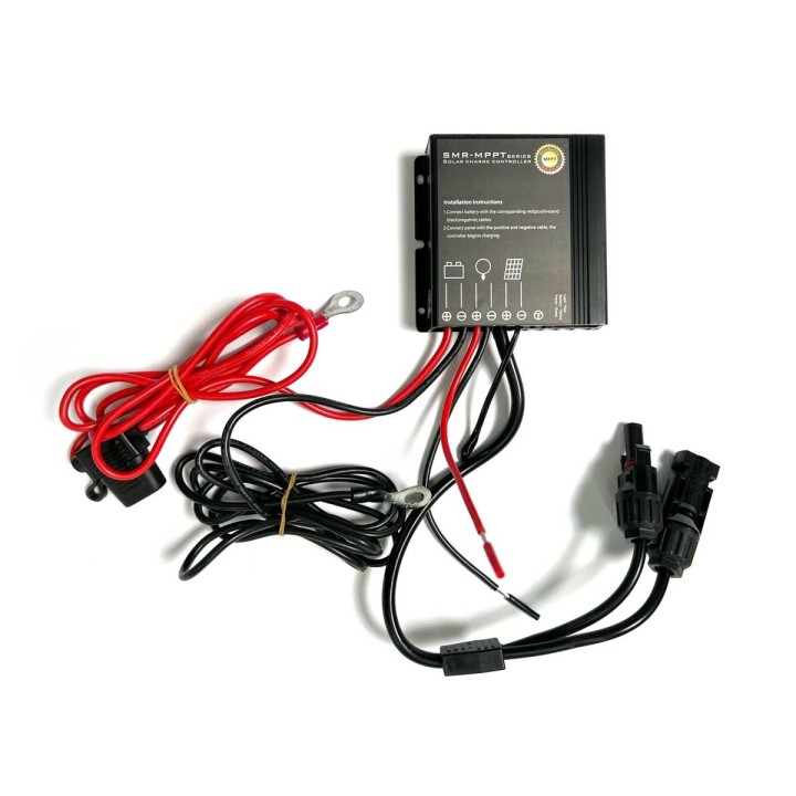 Optional Plug-and-Play MPPT Solar Charge Controller: This waterproof device is mounted in the engine compartment and is extremely resistant to heat and vibrations. The regulator automatically controls the amount of current reaching the battery and prevents overcharging. The charge controller is pre-wired with fuses, terminals and plugs to eliminate unnecessary guesswork when setting up the system in advance (not included - please order separately under item no. 21622 if necessary).