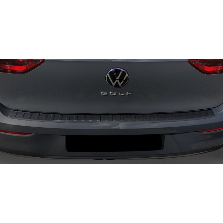 This ribbed trunk sill protection effectively protects against dents and scratches during loading and unloading. Thanks to its shape, like the ribbed pattern on top, it is made to perfectly fit the design of the VOLKSWAGEN GOLF 8. And if you ever want to replace the protector after intensive use, that's also possible. It will be much cheaper than repainting your bumper.